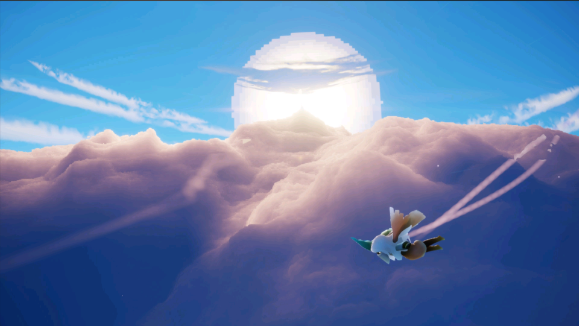 接下来要重点利用地形和云层辅助飞行。到达第二个光翼位置时,别直接跳上高台,而是选择更低一级的台阶。跳下后立刻切到滑翔模式,借助惯性飞向对面平台。如果高度不够,可以蹭附近的云层补充能量。这里需要一点耐心,多试几次就能掌握节奏。记得在滑翔时微调方向,避免撞到障碍物。