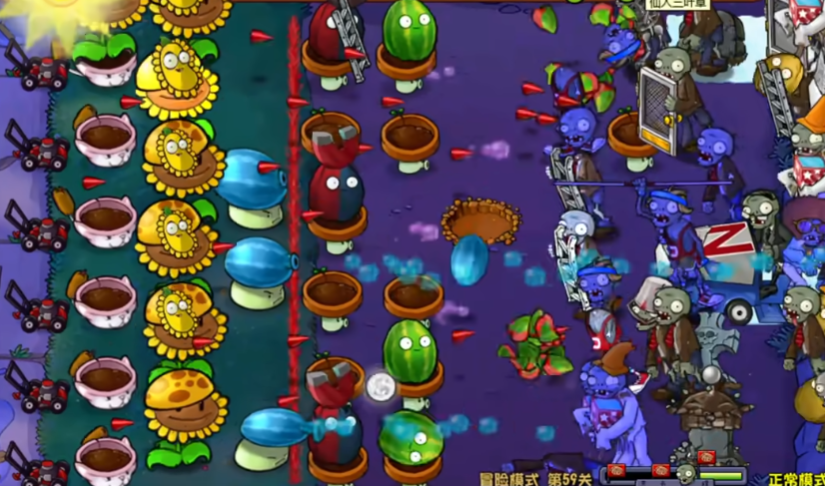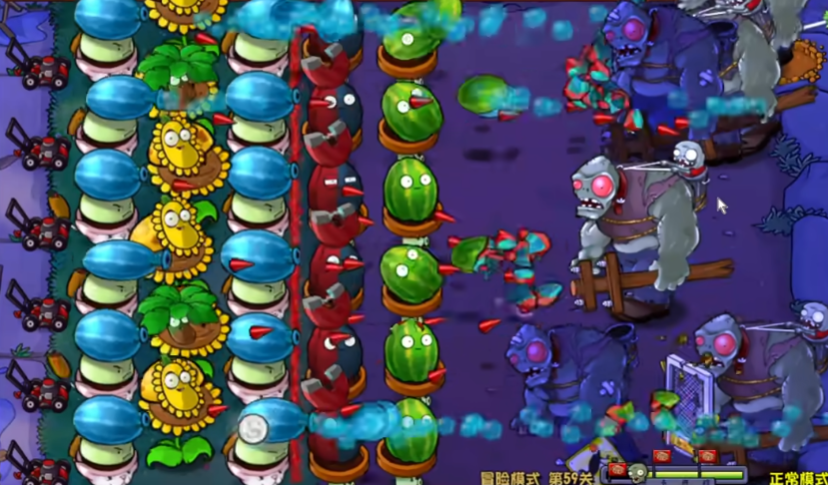 后期僵尸会变得特别密集,尤其是橄榄球僵尸和巨人僵尸一起来的时候。这时候咱们之前种的寒冰豌豆坚果就派上用场了,它们能拖慢僵尸速度给输出植物争取时间。如果发现某条防线快被突破,赶紧铲掉多余的向日葵换成冰冻西瓜大喷菇救场。最后关头可以用寒光菇冻住全屏僵尸争取输出机会,但注意别等僵尸贴脸再放,提前预判很重要。