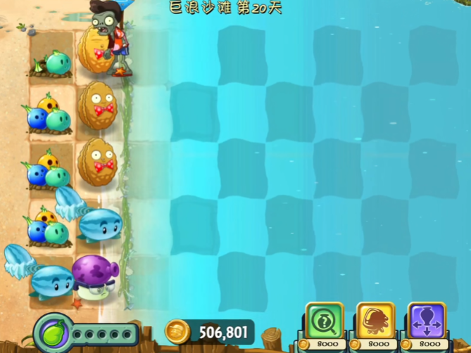 巨浪沙滩第20天采用坚不可摧模式,系统提供固定阳光且禁止生产类植物。推荐冰西瓜置于2、4排实现全局减速,每排放置充能柚子,中间区域布置保龄泡泡增强弹射伤害。当僵尸突破下层防线时需立即对充能柚子使用能量豆大招。海盗港湾第20天依赖弹簧豆的击退机制,将玉米投手和寒冰射手分列二、三排,坚果用于阻挡中间密集僵尸。首波僵尸来袭时用能量豆强化弹簧豆清场,第二波待僵尸集中至桥上再次触发弹簧豆大招,期间持续补充玉米投手形成火力网。