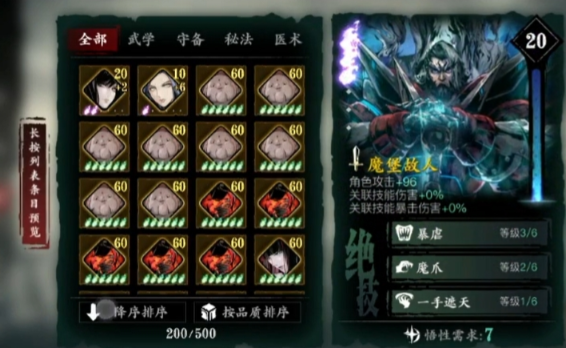 心法养成是左殇中期发力的关键,新手可通过活动获取芳华邪后、白衣留情等核心心法。魔堡故人需优先升华至紫一激活冷却缩减羁绊,黑白剑则提供稳定的暴击加成。心法升级材料可通过巍峨之卷副本获取,记忆粉尘不足时可分解蓝色心法兑换。需注意避免将稀有心法作为经验材料消耗,尤其是后期必备的万魔、狂龙等羁绊组件。