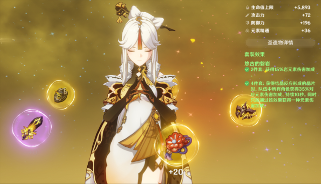 雷系输出角色适合如雷的盛怒4件套,水系辅助可选择沉沦之心2件+千岩牢固2件,岩系辅助推荐悠古的磐岩4件套。部分角色存在多种流派选择,例如阿贝多可走防御路线强化阳华输出,也可堆叠攻击属性提升大招伤害。