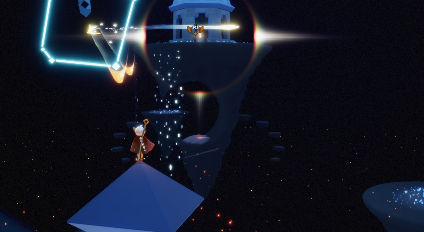 禁阁星星返回天际的核心操作需要玩家先解锁禁阁地图中的先祖并完成其回忆任务。具体流程为:进入禁阁后寻找蓝色人影的先祖,触碰并跟随光点收集记忆碎片,随后点燃先祖雕像学习动作。完成该步骤后,需前往禁阁终点神庙,在神坛光圈处打坐触发动画,即可使先祖化为星星回归天际。此机制适用于所有地图的先祖,但禁阁因地形复杂需特别注意双人门或浮石机关的协作解锁。