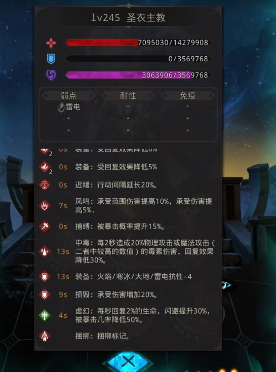 战斗过程中需注意拉赫赞的净化机制会清除负面状态,因此控制链需紧凑衔接。若未能在控制时间内击杀,BOSS残血阶段会因麻痹状态无法闪避攻击,仅需一次暴击即可终结战斗。阵容配置上除核心输出外,建议携带致盲类辅助角色如暗鸦,其技能可有效干扰BOSS暴击判定。装备精炼以增伤和负面效果命中为主,防具词条需兼顾生存与输出强化。