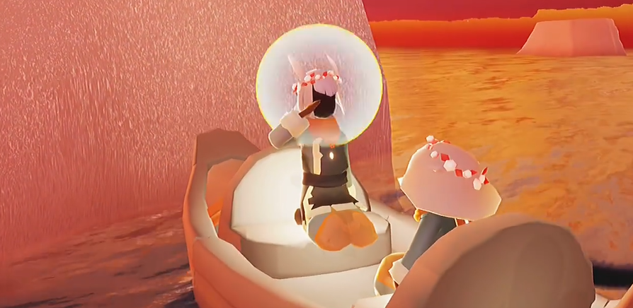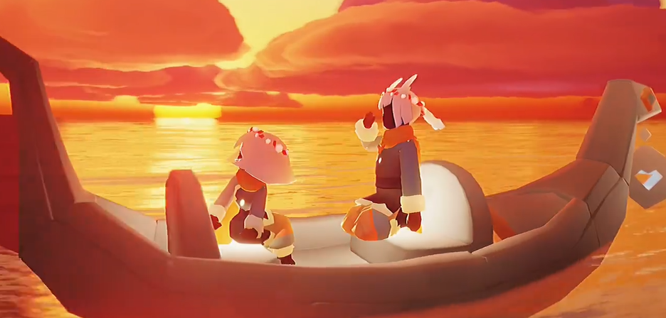当首位玩家登船后,船体周围会出现明显的提示光效,第二名玩家可通过相同交互方式加入。双人乘船期间会产生特殊的爱心粒子特效,这是该道具的标志性视觉表现。船只启动后会以恒定速度沿直线行进,行进过程中乘客可通过调整视角改变观察方向,但无法主动控制航行路线。若需终止航行,任何一名玩家使用脱离动作即可使船只立即消失并返回背部装备状态。