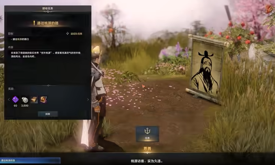 初次登岛需与NPC恩善对话接取任务通往桃源的路,完成系列任务后解锁基础奖励。岛屿包含两个限时合作任务:一是营救石头聪慧兽,打破封印石后可能触发隐藏任务寻找筋斗云三万里;二是鹿与云彩游玩之歌,需与其他玩家共同演奏春之歌触发巨型桃子掉落奖励。合作任务完成后可获得大量兑换材料,用于后续商店兑换。