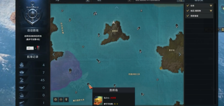 首先快递岛就是洛邦岛,它在贝隆大陆的右下角。这个岛的任务比较特别,需要完成前置条件才能解锁每日任务。第一次上岛时,记得把能看到的任务都清掉,不管是紫色还是黄色任务,这样才能解锁后续的日常任务。解锁后,每天可以做三次每日任务,坚持送同一个地点六次,就能触发岛之心的紫色任务了。