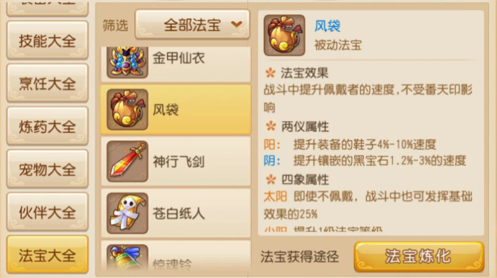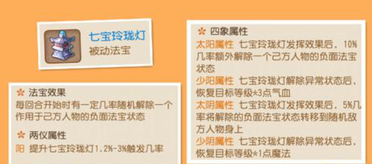 除基础治疗加成外,碧玉葫芦的两仪属性建议优先选择提升法术防御或气血的阴属性,以弥补化生寺法防较低的短板。四象选择太阴(3阴)可进一步强化暴击收益,而太阳(3阳)则适合追求稳定抗性的玩家。法宝等级需优先升至满级,进阶后的额外属性对化生寺的生存和辅助能力有显著提升。