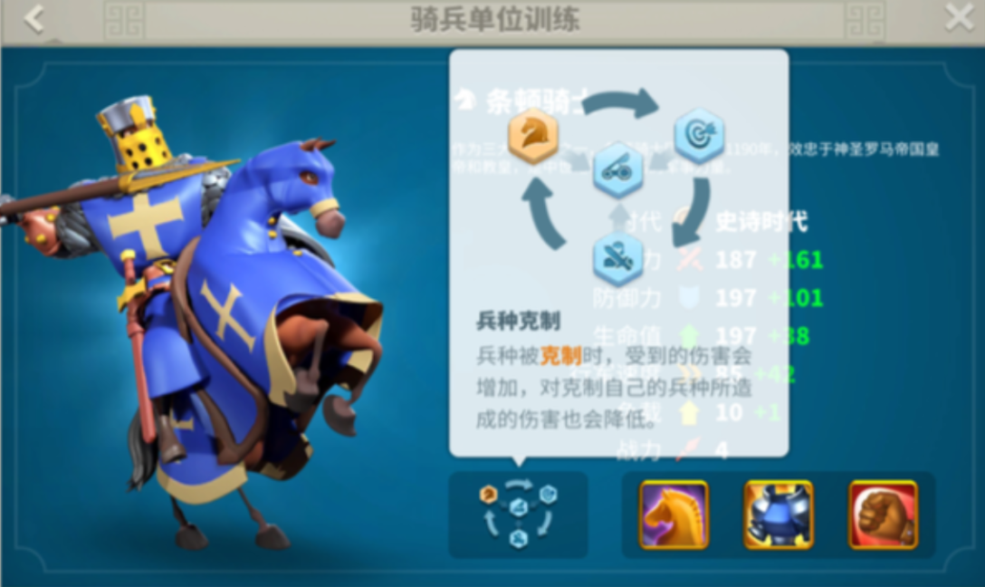 兵种类型选择需结合文明特性与战略需求。步兵文明优先训练三级步兵以发挥防御优势,骑兵文明则侧重三级骑兵的机动性。纯兵种编队的战斗力普遍高于混合编队,但需注意兵种克制关系:步兵克弓兵、弓兵克骑兵、骑兵克步兵。三级士兵作为中期主力,在野战中表现优于低级兵种,但需避免盲目投入攻城战,因其消耗与治疗成本较高。建议保持至少2-3支满编三级部队用于日常作战与资源保护。