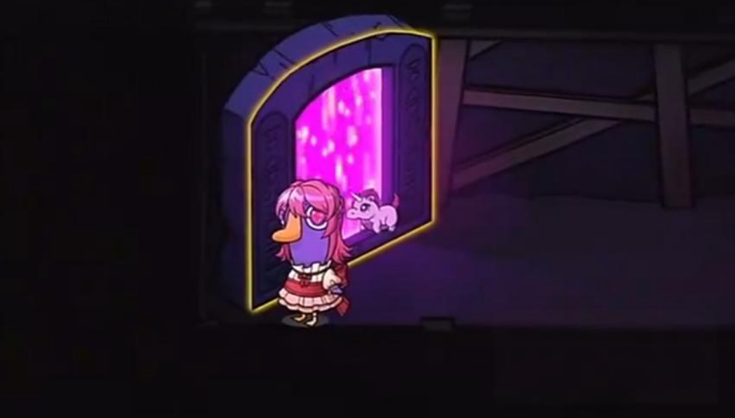传送门是一种特殊的地图机制,位于地下室隧道入口左侧尽头。该传送门为单向随机传送,使用后玩家会被传送到地图任意位置,并伴随紫色雾气动画特效。所有阵营角色均可无限制使用传送门,包括好人阵营的鹅、坏人阵营的鸭以及中立角色。传送门的开启条件需要至少一名玩家在隧道左下方完成献花任务,此后全局玩家均可自由使用该机制。