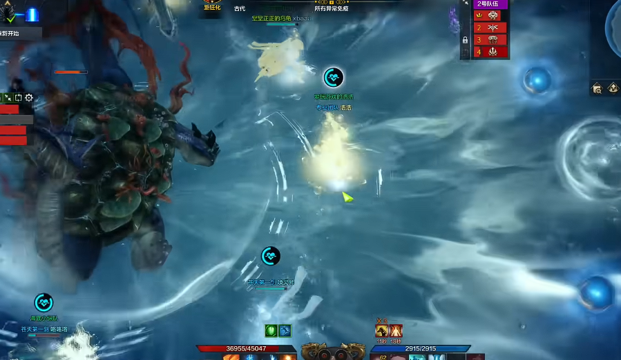第二个BOSS卡尔科萨的制裁者以抓取和河豚召唤为核心机制。当BOSS血量降至17、11、3条时会召唤河豚,需分配专人处理。被抓取的玩家需依靠队友使用高无力化技能打空黄条解救。该BOSS的水冲波技能会形成十字或追踪型扇形区域,需提前规划走位路径。藤蔓技能具有定身效果,需通过位移或高伤害技能破除控制。
