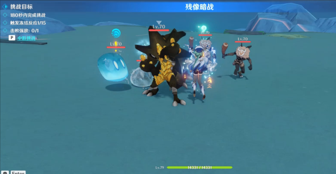 战斗过程中强敌出现机制是关键,释放足够次数元素爆发后会召唤带星标标记的强敌。优先击败强敌可直接完成挑战目标,无需清剿全部小怪。绝路模式下强敌在生命值低于15%时会触发十秒内大量回血的效果,需预留爆发技能进行快速收割。合理搭配元素反应和食物增益能显著提升输出效率。