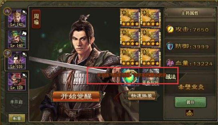 炎龙冲阵的升级需要通过觉醒进度条逐步解锁,每层觉醒需消耗20酒/次,无法用宝石或觉醒石加速。建议提前储备大量酒资源,优先点亮烈焰和炎龙冲阵的被动强化节点。实战中若遇到高血量BOSS,可先用其他武将消耗其兵力,再让周瑜•诸葛亮进场收割,快速叠满冲阵次数。战法对召唤类敌人效果显著,能高效清理喽啰部队。