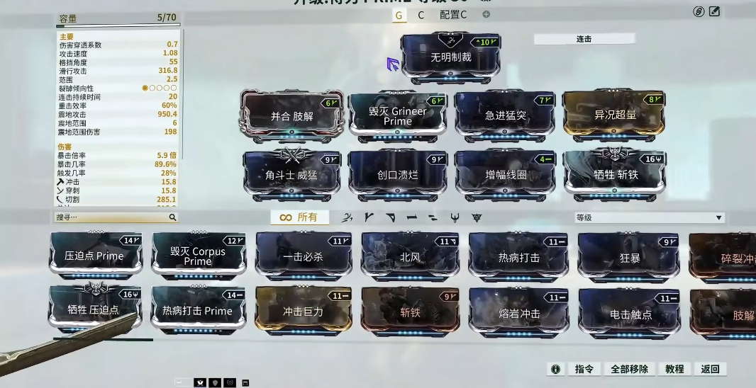 紫卡的选择对猫刀影响很大,优先考虑基础伤害、暴击伤害、暴击率和元素伤害词条,比如腐蚀、毒气或病毒属性,能针对不同派系的敌人。负词条方面,攻速、范围或派系歧视类负面影响较小,可以接受。猫刀不吃武器面板属性,所以高裂罅倾向性的武器更适合,比如陶瓷匕首,灵化后的暴击倍率很高,配合猫甲效果更佳。