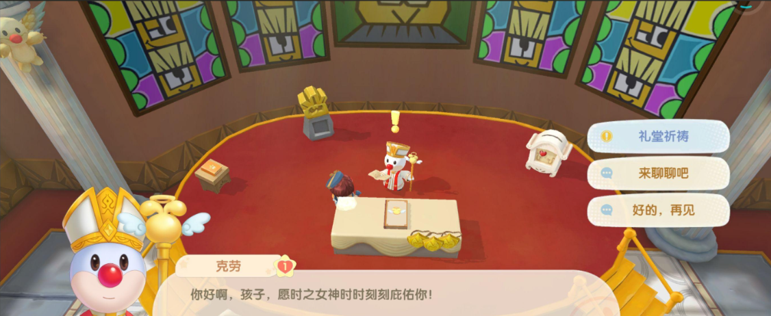 进入教堂后,小伙伴们会发现这里不仅是站岗的地点,还承担着多种功能。克劳神父在这里为拉姆提供复活服务,拉姆救治室可以治疗生病的宠物。教堂内部设计宽敞,长椅区域允许大家坐下祈福。站岗时需要站在指定标记上保持不动,系统会自动判定任务完成。注意站岗期间不要频繁移动,否则可能中断任务进度。