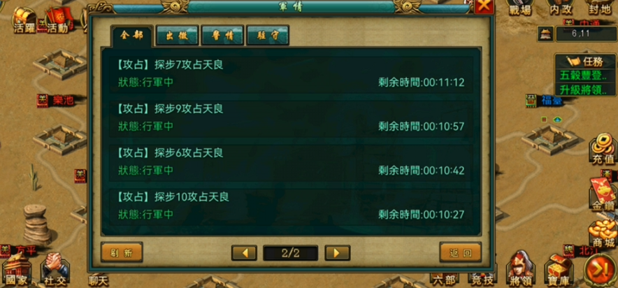 从军事角度看,占领城池能够扩展势力范围并建立前线据点。这些据点可作为跳板发起更大规模的国战,或用于防御敌对势力的反扑。部分关键城池拥有特殊地形加成,例如隘口类城池能大幅降低敌军行进速度,为防守方创造战术优势。占领州城或都城级别的城池会激活全域增益效果,例如全军攻击力提升或伤兵恢复加速。