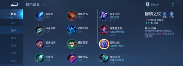 一套比较主流和稳妥的装备搭配思路是这样的。鞋子方面,先出一个冷静之靴,它能提供冷却缩减,让你前期可以更频繁地使用技能去清兵线和骚扰对手。第一件核心输出装备可以选择回响之杖,这件装备不仅能加法强,被动效果还能让技能命中时有个小范围爆炸,清线速度一下子就上来了,而且增加的移速对支援跑图也很有帮助。接着可以出痛苦面具,它能进一步提供法术穿透和冷却缩减,还会附带一个基于目标生命值的持续伤害效果,打坦克也会更疼一些,同时它加的少量生命值也能提升一点生存能力。