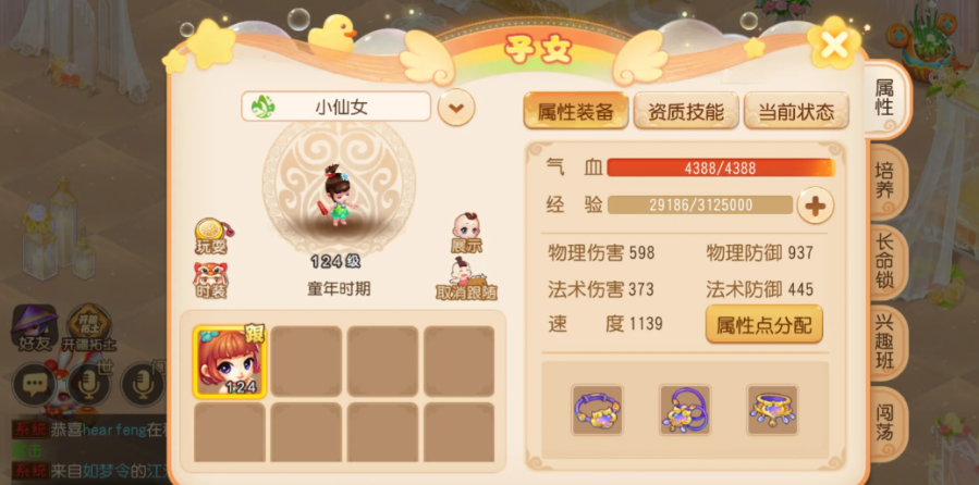 具体到孩子的培养细节上,加点、技能和装备的选择都至关重要。加点并非一成不变,你需要根据孩子的定位来调整。配速辅助孩子(如普陀、地府)速度通常需要快过你的人物角色,以便能及时给你加状态或拉人,推荐加一些敏捷属性并学习疾风步这类加速的灵锁技。而如果追求生存,可以培养血耐加点,提升抗击打能力。技能方面,入场技能逆境求生能提供护盾增强生存,秘法突袭则能补充伤害;离场技能百折不挠有概率倒地不离场并复活,非常实用,狂法之怒则能在离场时给你加法术暴击增益。孩子的装备技能也应以增强抗性或特定功能为主。
