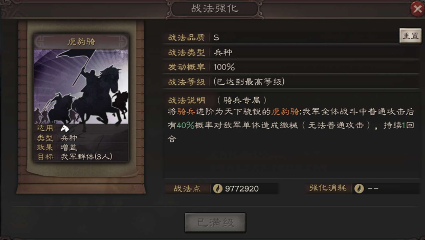 队伍组好了,战法和兵书该怎么带就是决定强度的细节了。张辽通常携带暴戾无仁和鬼神霆威这样的高伤害突击战法,追求单点爆破。夏侯渊的标准搭配是裸衣血战和百骑劫营,裸衣提供连击状态是触发突击战法的关键。辅助位的郭嘉或曹操,则安心带上铁骑驱驰(提供先攻和减统效果,抢先手必备)、虎豹骑兵种战法,以及横戈跃马或锋矢阵等进一步增加输出的战法。兵书方面,两个输出武将一般点作战系列,选择一鼓作气、胜战和执锐,最大化前三回合的爆发伤害;辅助将领则点九变系列的诱敌之策、励军等,给队友加伤就行。爆头骑一切配置都是为了把前几回合的伤害堆到极致,所以通常不带治疗和减伤战法,非常极端。