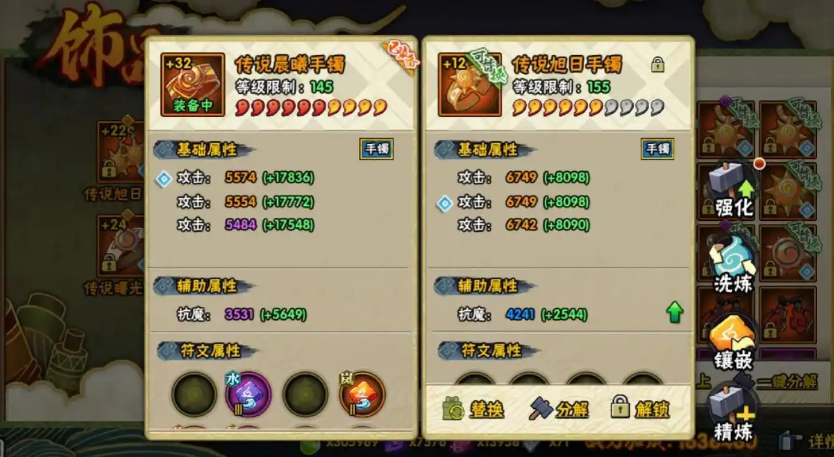 洗练操作需要谨慎,因为每次只能选择一个属性进行更改,洗练结果会随机生成新属性,玩家需在替换前评估是否值得。洗练时机也很重要,例如在游戏更新后或特定活动期间,洗出紫色或橙色属性的概率可能会更高,因此可以趁这些时段集中洗练以节省资源。洗练前建议备份当前属性,以防不满意时回退,同时结合角色定位调整策略:输出型忍者优先洗攻击和暴击属性,而防御型忍者则更适合生命和防御属性,这样能最大化实战效果。饰品品质从普通到传说对应绿、蓝、紫、橙颜色,品质越高基础属性越强,洗练效果也更明显。对于前期玩家,紫色饰品就可以开始洗练,但橙色饰品才是最终目标,因为它们的属性上限更高。洗练过程中,如果遇到三个属性都不理想的情况,不要急于继续,可以换个时间再试,因为洗练概率有时会波动,保持耐心能避免资源浪费。洗练石虽然不稀有,但合理规划使用能加快战力成长。