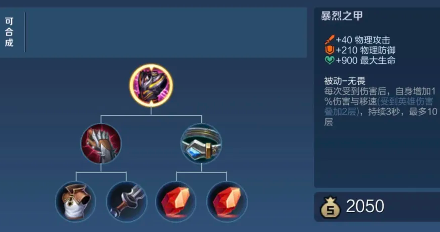 游戏打到中后期,光有输出还不够,因为敌人伤害也高了,你很可能还没砍到人自己就先没血了。所以第五件装备非常关键,要补一件能保命的防御装。这里有两个很不错的选择,一个是暴烈之甲,它不仅能加物理防御和血量,被动效果还能在你挨打时提升自己的伤害和移速,让你越打越猛;另一个是反伤刺甲,如果对面物理伤害特别高,射手很肥,出反甲的效果就很好,既能抗住伤害,还能把一部分伤害弹回去。具体出哪件,就看当时对面谁最让你头疼。