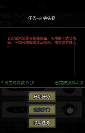 要挑战古寺五绝,首先需要完成游戏第二十五章后解锁历练任务中的古寺失窃。接取任务后前往长安,向下移动8步到达官道,然后右转进入大慈悲寺与凌云对话。之后返回中央广场,向右移动3步到长乐门,再次和凌云对话就能传送到新地图。在新地图中找到捕风卫对话,他会告知你的目标是玄门五绝,并可以选择推进路线。