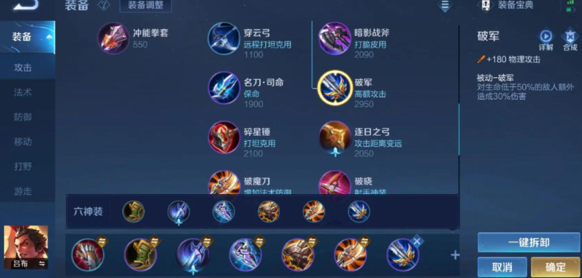 吕布在打野时出装需要结合局势灵活调整,通常以攻击装为主来提升刷野速度和GANK伤害。由于吕布的真实伤害依赖物理攻击,破军是核心装备,能大幅增强输出能力。吕布在近身战斗中需要一定防御来避免被秒杀,所以在选择装备时要平衡攻击和生存。常见的出装思路包括纯输出和半肉两种方向,纯输出适合顺风局快速秒杀敌人,半肉则在逆风时提高容错率。吕布的技能有高额物理加成,因此优先堆叠物理攻击力可以最大化伤害效果。