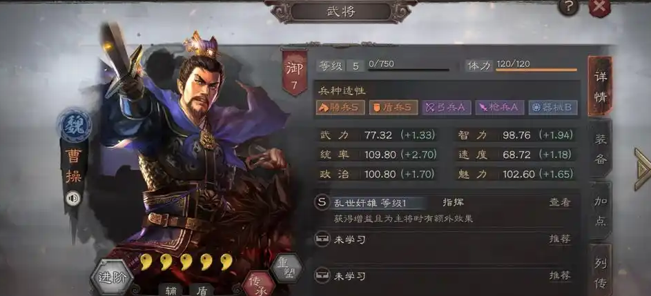 还有一些容易被新手忽略的隐藏加成也能变相加强武将属性。比如兵种适性,每个武将带不同的兵种(比如骑兵、枪兵、弓兵)表现不一样,适性等级从S到C,适性越高,武将的属性在实际战斗中发挥的效果就越好。所以尽量让武将带领他适性最高的兵种出战。把同一个阵营(比如都是蜀国)的武将编在一个队伍里,会有额外的属性百分比加成。如果凑齐了有缘分关系的特定武将组合,还能激活更强的隐藏属性提升,这些细节积累起来对队伍的整体强度帮助很大。