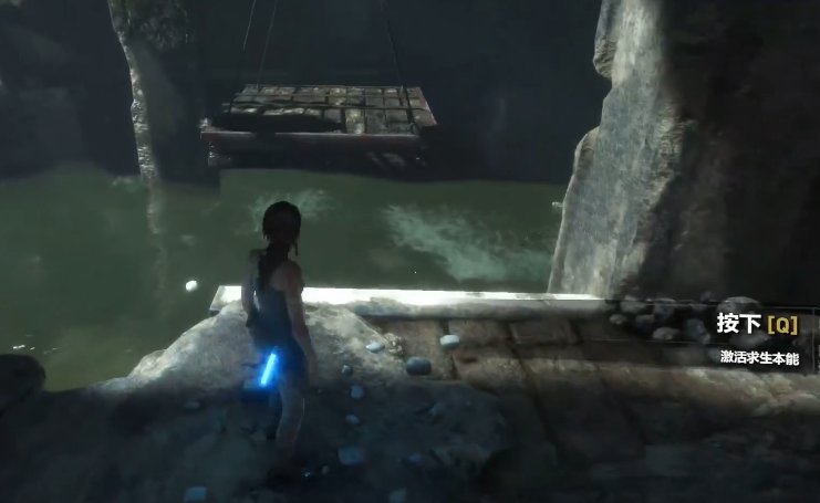 成功抵达对面平台后,接下来的关键是控制水位。仔细观察平台右侧,可以找到一个可以互动的水槽或类似的排水结构。使用劳拉的工具或直接进行撬动操作,将这个控制水流的结构打开,其目的是为了让下方水域的水位得以上升。水位升高后,之前被击落在水中的木筏或类似的浮动物体便会随之浮起,达到一个新的高度。