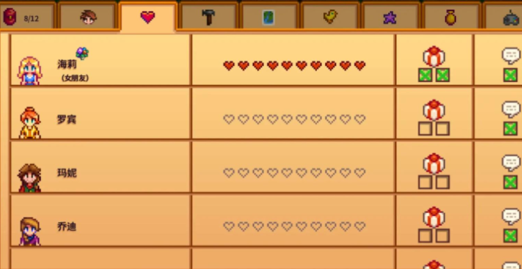 好感度达到特定阶段时会触发特殊事件,正确应对这些事件能快速提升关系,例如2心事件中在海莉和艾米丽都在家时进入她们的住所,选择让海莉固定每周打扫可以增加好感;4心事件中进入她家帮助她打开罐子;6心事件在非冬季的上午10点到下午4点前往沙滩帮她找回丢失的祖母手镯;8心事件在晴天上午10点到下午4点之间来到煤矿森林协助她拍照;10心事件进入她家后赞美她的暗室并亲吻她,这些事件中的对话选择要展现共情和耐心,避免强硬或敷衍的回应。