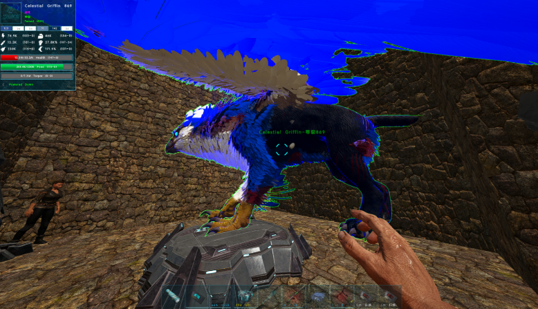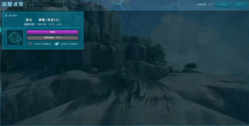 寻找狮鹫并安全控制住它是实战操作的第一步。狮鹫通常栖息在高海拔地区,如高山、悬崖峭壁等险峻地带,地图上的远峰山脉、绿色方舟附近是常见的刷新点。由于其警觉性高且移动灵活,建议骑乘一只高耐力的飞行坐骑如翼龙进行搜寻。一个高效且安全的策略是在其刷新点附近,利用柱子或恐龙门框架建造一个结构简单的困龙房,然后引诱狮鹫进入并迅速关门,将其困在其中,这能有效防止它逃脱或反击,为后续步骤创造稳定环境。