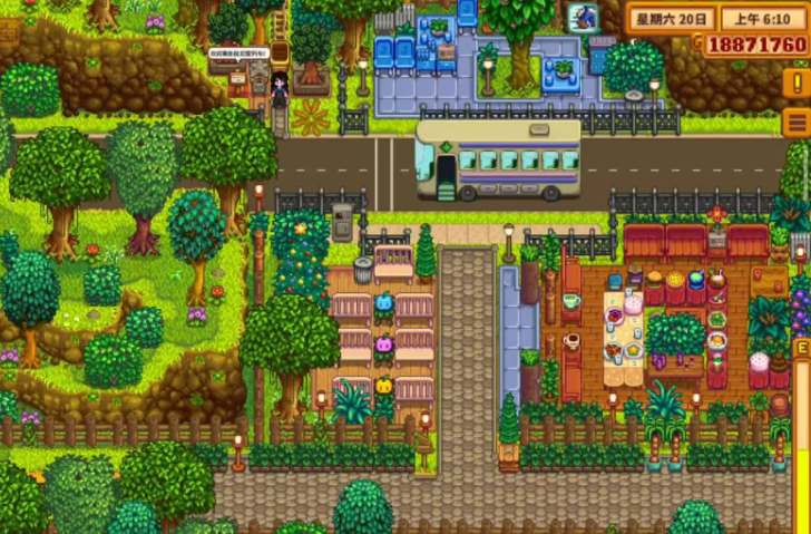 完成所有金币收集包后,公交车将被修复,为玩家开启新的游戏内容。公交车修复后,每天从上午10点10分至下午5点,潘姆会在公交站提供售票服务,玩家支付500金即可乘车前往沙漠。沙漠区域包含头骨山洞等新地点,以及绿洲商店等设施,这拓展了探索范围和资源获取途径,是游戏进程中的关键一步。