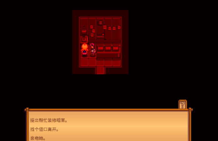 在好感度满10心且所有前置事件完成后,密室剧情便进入可触发阶段。触发时机通常在工作日的上午9点至下午5点之间,你需要确保海莉此时在家,雨天她待在卧室的概率较高,是较为理想的时机。进入海莉家后,前往她卧室那扇平时锁着的门,此时门已解锁,门后便是她的秘密密室。进入密室后,海莉会向你展示她的摄影作品和个人物品。此时有两个关键选择:你可以选择夸赞密室看上去棒极了来增加好感;也可以选择尝试亲吻她,这个行为的成功与否取决于当前的好感度水平。若选择帮助她装修密室,则会消耗一定数量的木材和石头材料,但能让密室空间变得更加宽敞美观。完成密室剧情后,这个空间会对玩家持续开放,可以随时进入参观。婚后,这个密室会移至你们住宅二楼的右侧。