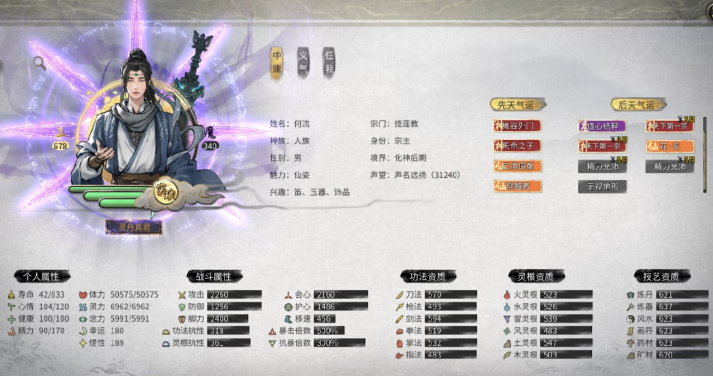 追求极致的基础属性是许多玩家的首要目标,而公认的顶级搭配通常由三个红色品质的隐藏气运构成。人族圣体提供攻击力、悟性、幸运、体力和魅力的全面加成;武圣转世进一步强化攻击力、防御力和悟性,并提升声望;鬼谷外门则专注于提供高额的攻击力与悟性加成。这三者组合在一起,能为角色奠定无与伦比的初期优势,在攻击力与悟性上获得巨大提升,适合任何流派的玩家快速突破境界与学习高阶功法。