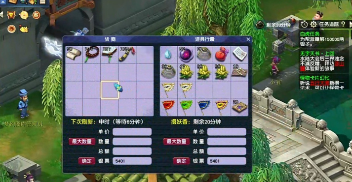 成为商人后,你的核心玩法就是跑商。你需要从白虎堂总管那里领取一张叫银票的东西,这相当于你的启动资金。你的任务就是利用这些本金,在游戏里不同的地方比如长安城、傲来国、长寿村这些城市的商人那里,低买高卖各种商品。你得时刻留意不同地方的物价波动,比如长安的纸扇、地府的首饰、北俱芦洲的人参等等,它们的价格每隔一段时间就会刷新变化,你要做的就是找到便宜的地方买入,然后跑到价格高的地方卖出去,赚取差价。当你的银票里的钱累积到任务要求的目标数额时,就可以回去找白虎堂总管交票,这样就能获得丰厚的经验、金钱和帮派贡献度奖励了。