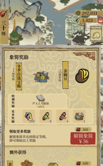 木简奖励的机制非常清晰,分为几个阶段。最基础的奖励,也就是完全免费可获取的部分,涵盖了从前1级到30级。从第1级提升至第10级,每升一级你都能稳定获得6666铜钱。当木简等级进入11级到20级这个区间,每级的奖励会变为5个补天石。而当你努力将等级提升至21级到30级时,每升一级的奖励会更加丰厚,可以拿到10个补天石。累计计算下来,通过木简活动,总共可以免费获得66660铜钱和150个补天石。