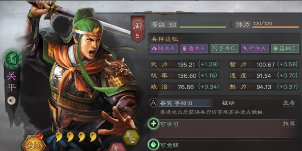 战法选择上,孙策核心用强攻加突击战法如手起刀落或弯弓饮羽,有资源可补瞋目横矛提升群攻能力。曹彰除了自带挫志怒袭和白眉,另一个格子选输出型战法如轻勇飞燕或落凤,既能补伤害又能加强控制。关平推荐强攻加暗藏玄机,快速叠奋突层数同时触发缴械,若队伍缺控可换盛气凌敌。加点方面孙策主武力,治疗量看武力高低;曹彰优先速度保证先手挂虚弱,其次武力;关平同样主武力,副统率或速度视阵容调整。