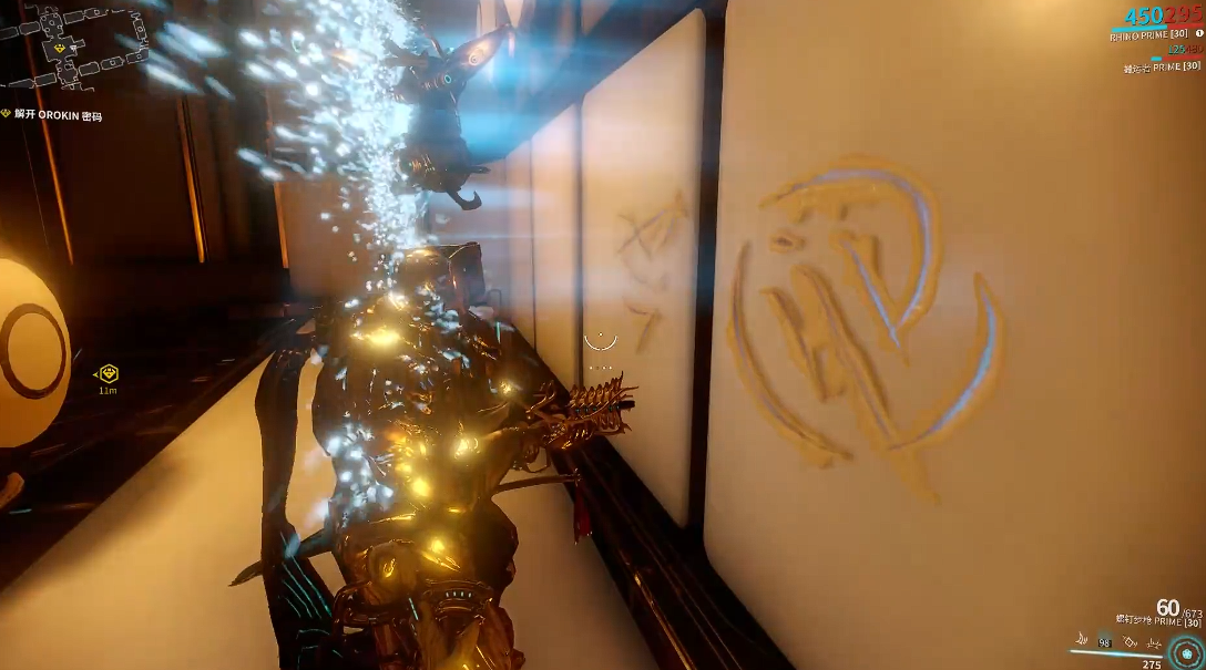 玩家会遇到一种新型的奥罗金密码锁机关,其解锁方法是观察环境,在周围的墙壁或柱子上寻找隐藏的三段符号,识别出这些符号之间共同的图案,然后根据这个共同点在密码锁装置上正确连接节点即可完成破解。随后的核心战斗是对战暗影圣装ExcaliburUmbra,这里存在一个至关重要的机制:战甲的任何直接攻击对Umbra都无法造成伤害,玩家必须切换至指挥官形态并使用增幅器进行输出才有可能将其击败,同时指挥官的隐身技能在此战中无效。对抗时需要灵活运用传识切换,用指挥官攻击并消耗目标的护盾后,使用近战拍击使其眩晕,再切换回战甲进行输出。