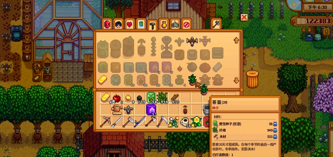 玩家需要与卡洛琳建立至少2颗心的好感度,然后在非雨天的上午9点至下午5点之间进入她家的厨房区域触发特殊剧情。这段剧情会引导玩家发现卡洛琳的日光室,第二天玩家将收到邮件获得茶苗配方。配方材料包括任意季节的野生种子2个、纤维5个和木材5个,这些基础材料在游戏早期就能收集到。