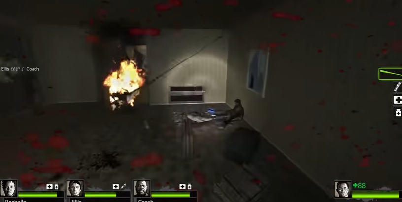逃出电梯后是一片火场,地上有免费的长枪别错过。这里要走之字形路线避开明火,注意有些着火的是僵尸本体,靠近不会受伤但别被它们扑倒。街道开阔地带最容易翻车,Smoker喜欢躲在卡车顶上拉人,Boomer尽量远距离爆头,不然它的呕吐物会引来尸群。商场内部空间狭窄,近战武器在这里比枪械好用,但小心别被Boomer堵在死角。