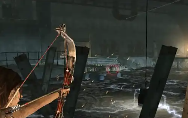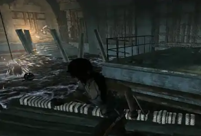 首先咱们要明确水牢的核心机制是带电水池,关键操作在于利用木筏和电灯机关。进入场景后先别急着下水,左边能看到一个被木桩固定的木筏,用火把点燃木桩让它烧断,这样木筏就能自由移动了。右边有个被障碍物挡住的小平台,记得用霰弹枪打碎障碍物,这样才能把木筏拉过来当垫脚石。