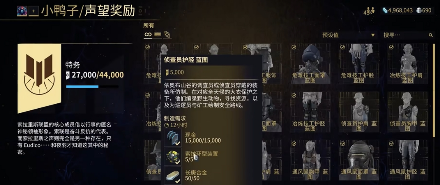 完成赏金任务后需返回中继站与小鸭子对话领取奖励,奖励通常包含稀有模组、特殊武器部件或装饰品。部分物品可能需要玩家达到特定段位才能购买,因此在任务前需确认自身段位是否符合要求。小鸭子的库存每次更新内容不同,若未出现心仪物品可等待下次周期。