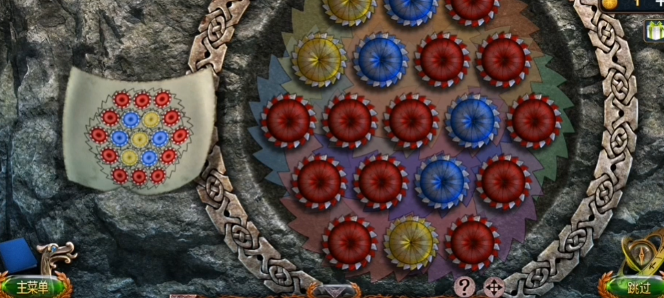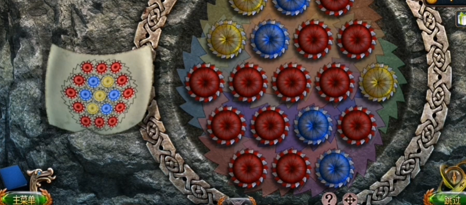 关键步骤是处理第三排第二个红色齿轮。连续点击它五次,周围齿轮会顺时针旋转五格,这一步能将下方两个红色齿轮推到最外圈。如果中途某个齿轮卡住,别着急,退回上一步重新尝试。罗盘解谜没有固定模式,需要你耐心观察每次旋转后齿轮的位置变化,必要时用内圈空位临时储存按钮。
