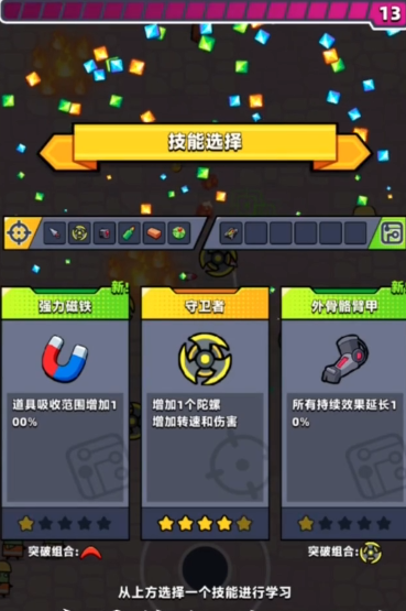 资源管理要精明,钻石存着抽永恒宝箱十连,金币优先升级武器、项链和手套这些加攻击的装备。商店刷新的武器图纸必买,巡逻奖励按时领取。每日挑战打完两次就够,别花钻石买第三次。如果随机到不想要的技能,可以大退重进刷新,但别超过三次否则可能丢失进度。