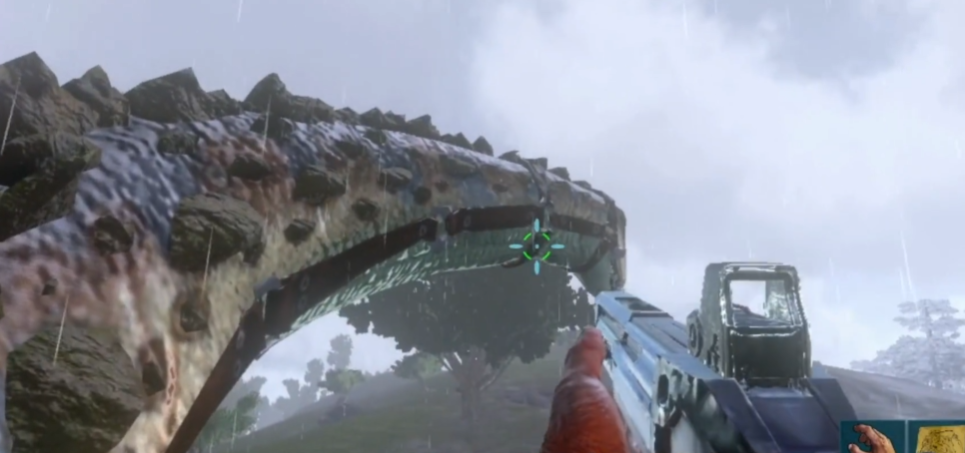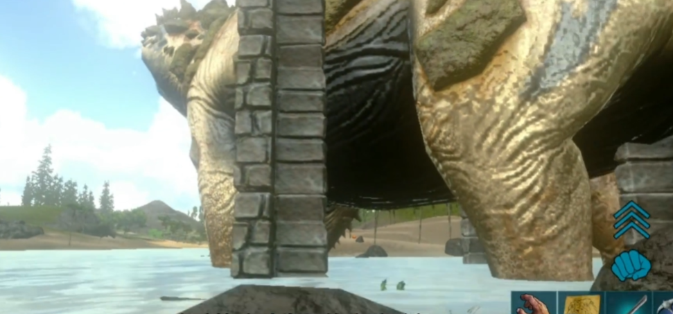 泰坦龙的眩晕值接近3万,且每次有效攻击必须命中头部才能积累眩晕值。需泰坦龙被攻击后会短暂进入攻击或逃跑状态,继续攻击不会增加眩晕值,必须等待其恢复平静后再继续轰击。单人驯服时建议提前用石制或金属围墙将泰坦龙围住,防止其逃脱或破坏建筑。若使用风神翼龙作为炮台载体,务必确保其飞行高度始终高于泰坦龙的颈部,否则可能被摧毁。