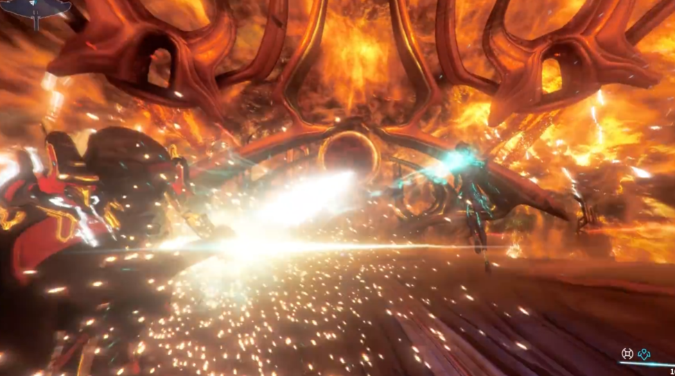 第一阶段需褪去战甲,使用指挥官反射莲妈发射的激光,瞄准天空中的红色圆盘进行破坏。每次成功击碎圆盘会削弱Ballas的护盾,重复四次即可进入下一阶段。此环节需快速完成,否则Ballas会持续召唤小怪增加压力。若小怪过多,可暂时切换战甲清理,但需及时切回指挥官继续反射激光。