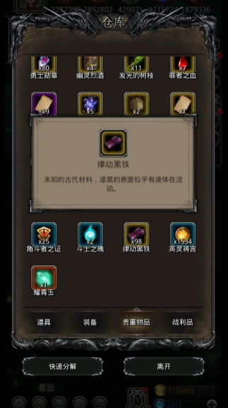 律动黑铁是地下城堡2中用于兑换圣物的关键道具,获取途径主要通过遗迹远征任务获得银币后兑换璀璨宝箱开启。每个璀璨宝箱可产出1-6个律动黑铁,但需注意兑换圣物的最低门槛为100个,且每次兑换消耗固定数量。工匠巴隆是唯一负责兑换的NPC,位于城堡内,玩家需提前规划资源积累周期。