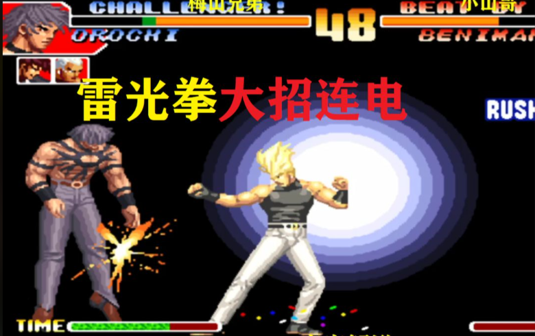 草薙京作为主角角色同样兼具强度与易用性。他的荒咬七十五式改等技能出招指令简单,火焰特效的判定范围广,对空能力出色。草薙京的普通攻击连段稳定,例如蹲B→站立C→毒咬可快速形成伤害,超必杀无式的释放时机直观。尽管部分连招需要精确输入,但整体操作逻辑符合格斗游戏基础框架,适合培养攻防节奏感。