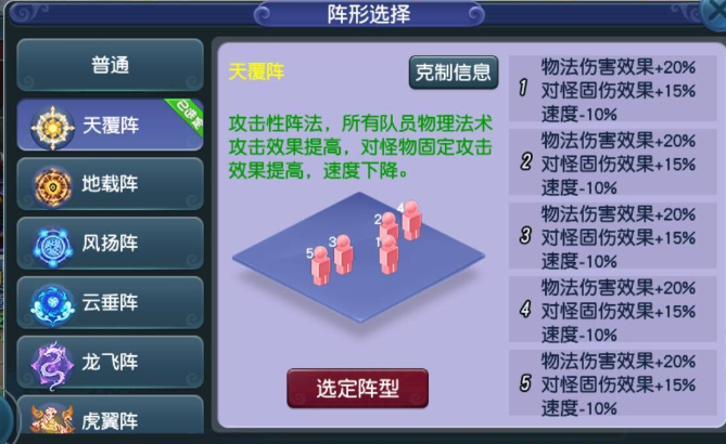 法系门派在梦幻西游中选择合适的阵法能大幅提升战斗效率,尤其是龙宫、魔王寨、魔方寸这类依赖法术爆发的门派。优先推荐龙飞阵和风扬阵,龙飞阵的三号位能提供30%法术伤害加成,但会降低30%速度,适合追求极限输出的法系;风扬阵则能兼顾伤害与速度,1号位提升20%伤害,2-3号位提升10%伤害,4-5号位增加10%速度,适合需要抢速度的战术。如果预算有限,平民玩家可以先学3级风阵或虎阵过渡,性价比更高。