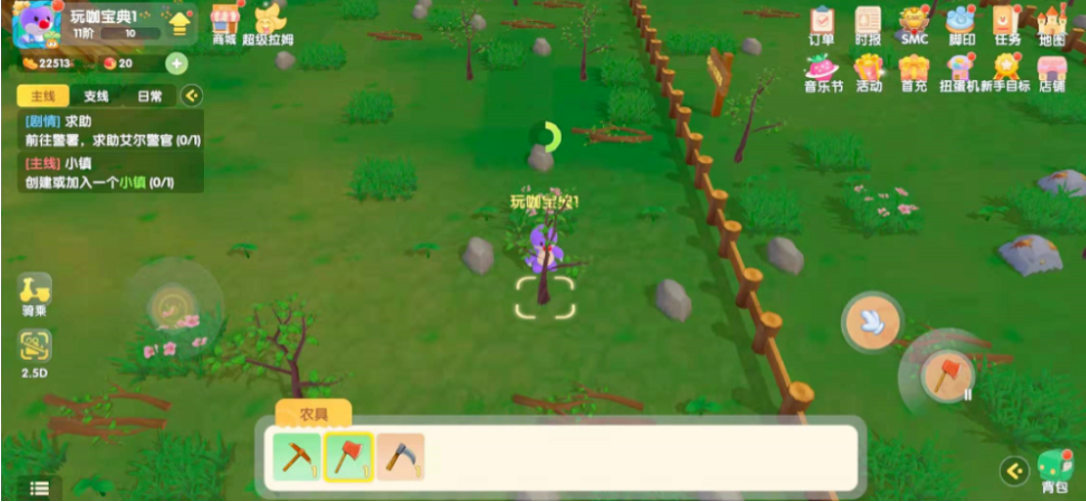砍树根的地点在家园后面的伐木林,传送过去就能看到随机刷新的资源。进入伐木林后,记得先找伐木林管理员接采集任务,这样砍树根时能获得额外奖励。靠近树根后,从农具栏选中升级好的斧头,连续点击几下就能砍倒。如果懒得手动砍,还可以让超级拉姆帮忙采集,不过每天只能用一次,适合想省时间的小伙伴。