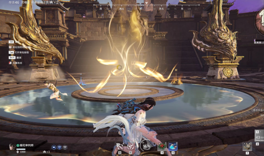 密室里的箭头方向对应上北下南左西右东,每一局顺序都会变化。咱们可以以入口位置为基准,按逆时针记住四个箭头的方位。墙壁上的箭头正好对应广场上方的四座雕像,回到广场后根据记忆的顺序击打雕像调整朝向,让雕像面朝箭头指示的方向,解密成功后就会出现宝箱。
